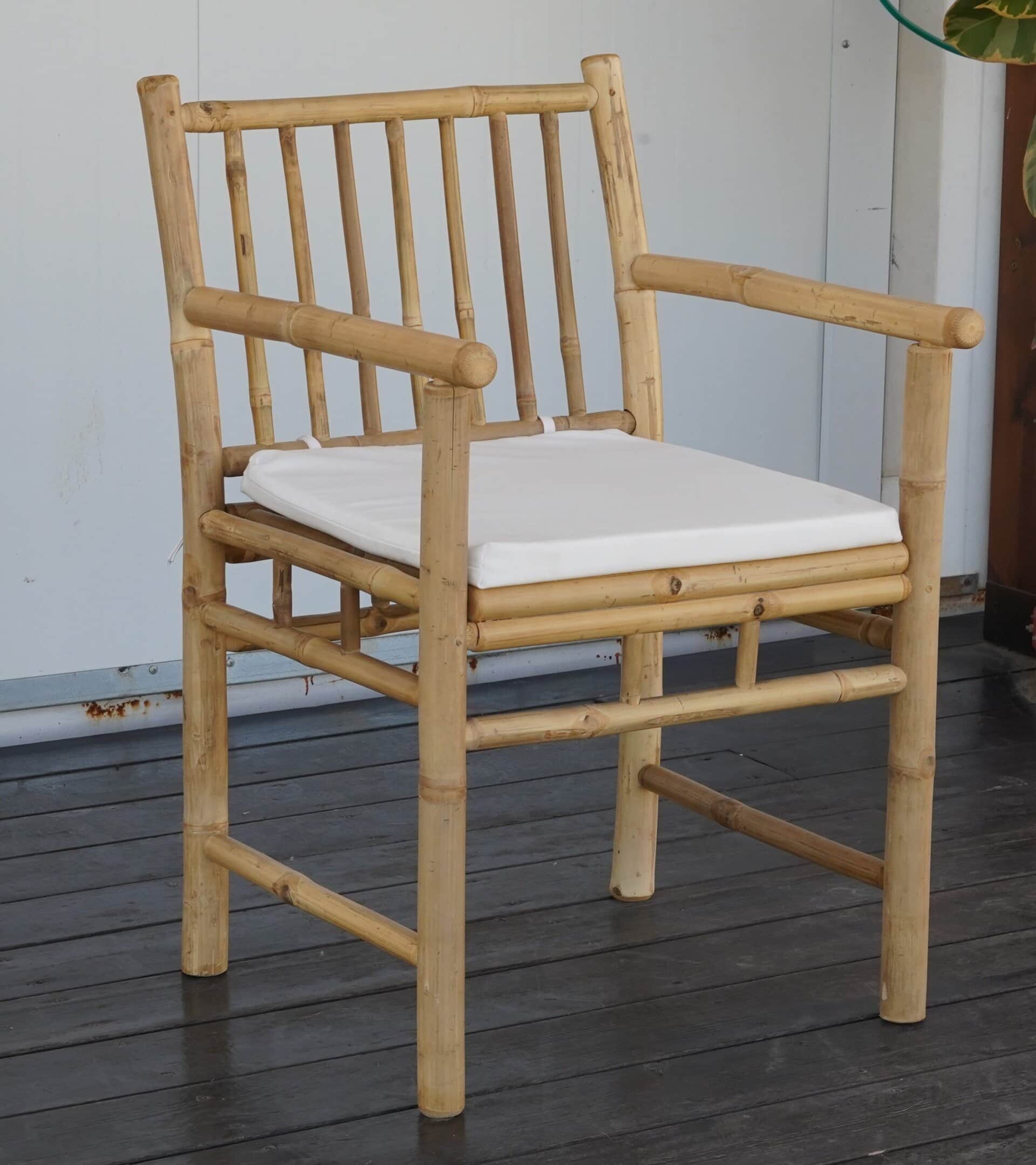הכסא עשוי מבמבוק מסוג טאם וונג חזק ואיכותי בעיצוב מעוגל, כפרי ויוקרתי. הכסא מגיע עם כרית מושב העשויה מבד אקרילי איכותי, נעים ועמיד שמיובא מספרד ונתפרה במיוחד כך שניתן יהיה בקלות לפרק ולכבס כמעט ללא מאמץ. מידות מושב: עומק- 44 ס"מ רוחב- 45 ס"מ מגיע מורכב. תפירת הכריות והמזרונים בישראל הרהיטים מיוצרים מבמבוקים מהמינים stocksii וTULDA שעברו צביעה בחומר PU ומחוברים באמצעות דבק עץ וברגים ממתכת.