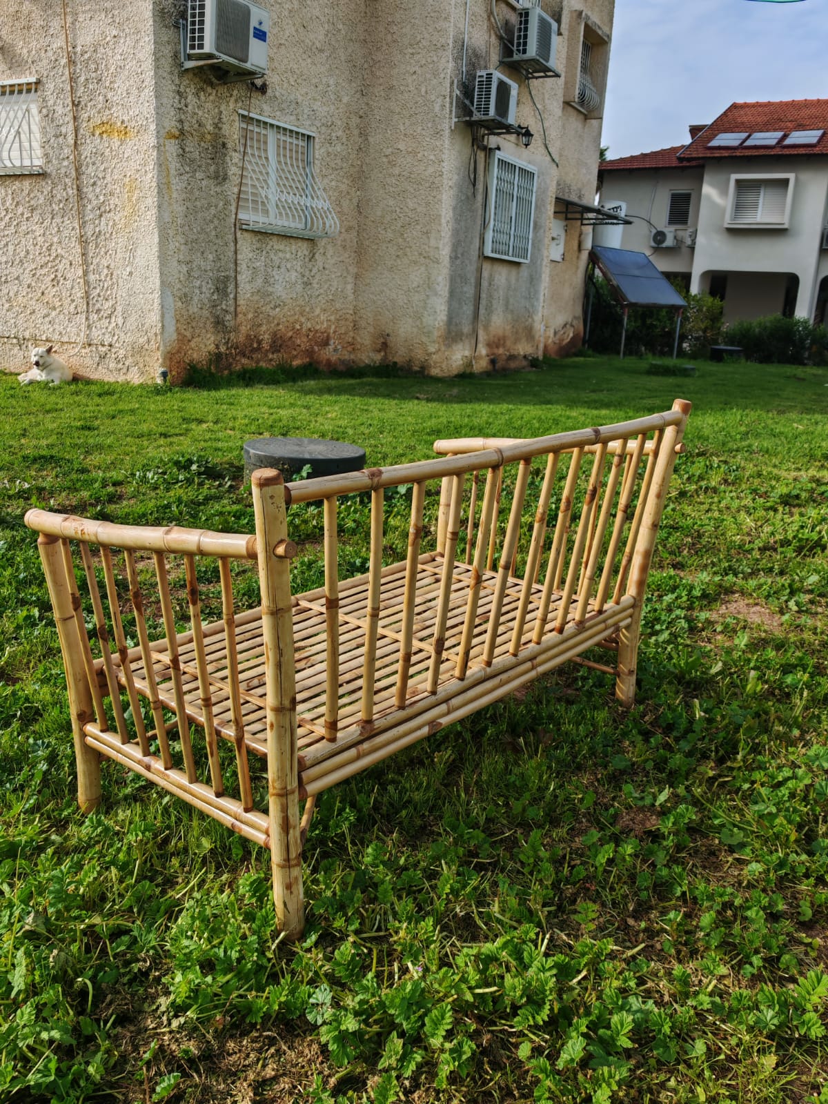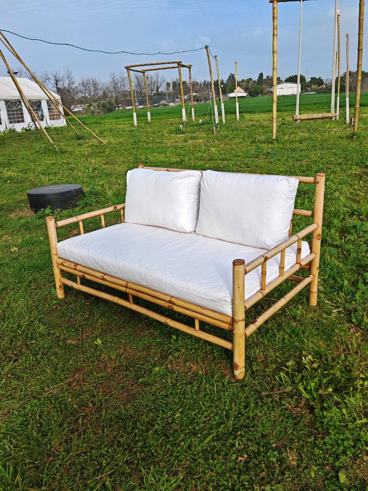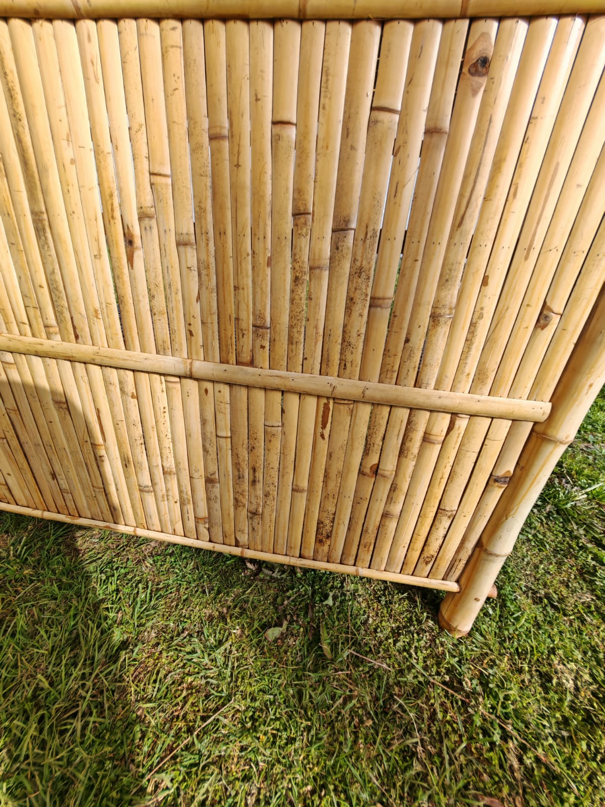 מערכת ישיבה מצדה עשויה מבמבוק טאם וונג האיכותי, בעלת צורה ריבועית בעיצוב כפרי יוקרתי כוללת 2 כורסאות פינתיות ועוד 4 כורסאות מודולריות ושולחן. ניתן להציב אותה במגוון אפשרויות. 4 חלקים מתצוגה 3 חדשים עברה צביעה, יש מעט כתמי טיפות צבע קלים, במצב מעולה, מתאים למקום מקורה מגשם. מידות מזרן כל כורסה: רוחב 72 ס"מ עומק 70 ס"מ המערכת מגיעה עם מזרוני ישיבה וכריות גב, המזרונים והכריות עשויים מבד אקרילי איכותי, נעים ועמיד שמיובא מספרד ונתפרו במיוחד כך שניתן יהיה בקלות לפרק ולכבס כמעט ללא מאמץ. תפירת הכריות והמזרונים בישראל
