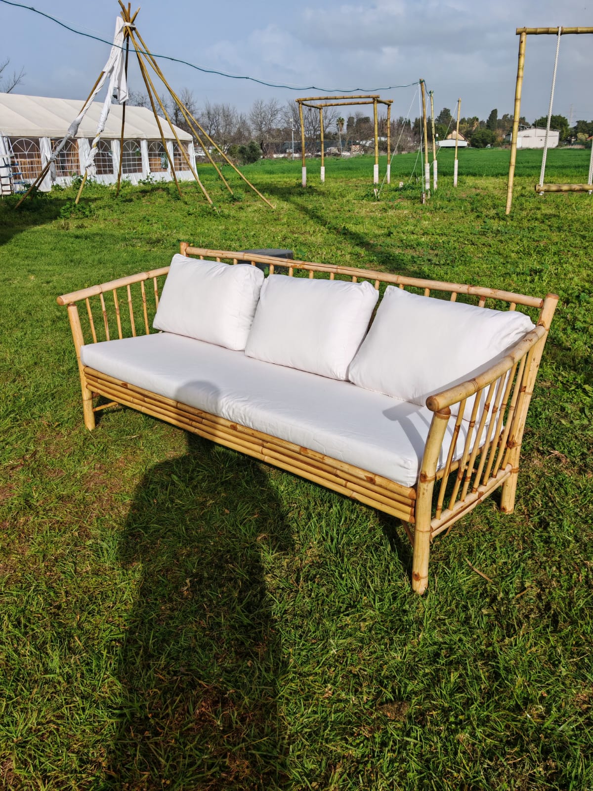 ספה טריפל דגם פארן מתצוגה, עברה חידוש, צביעה וכיבוס, מתאים למקום מקורה מגשם